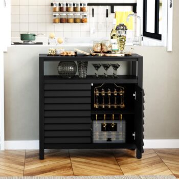 Farmhouse Coffee Bar Cabinet with Wine Storage, Sliding Barn Doors