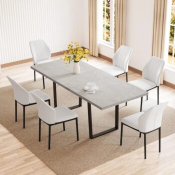 7-Piece Extendable Dining Table Set with Upholstered Chairs for 6-8 People