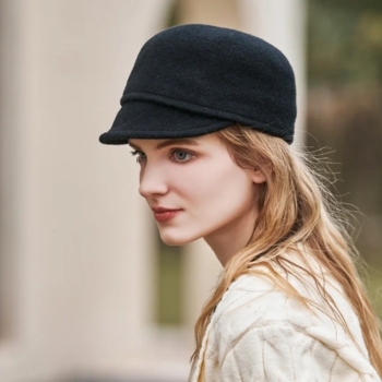 Designer Women’s Military Flat Visor Wool Newsboy Cap