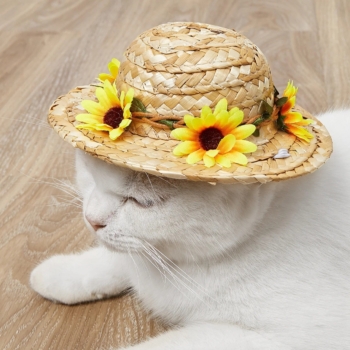 Handcrafted Sunflower Straw Hat for Cats and Small Dogs
