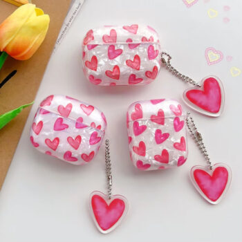 Pink Heart Silicone Case with Keyring for Apple AirPods