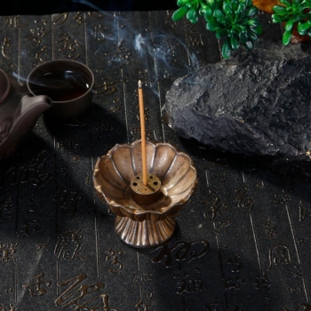 Vintage Ceramic Lotus Incense Burner with 9-Hole Metal Holder