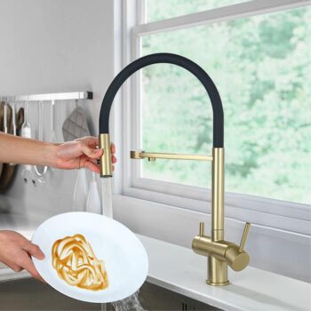 Luxury Brushed Gold Kitchen Faucet with Pull-Out Design, Single Handle, Dual Control