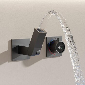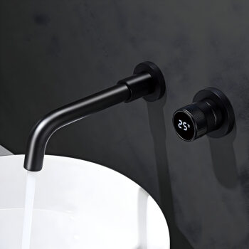 Black Brass Bathroom Faucet with Hidden Digital Display, Single Handle Dual Control