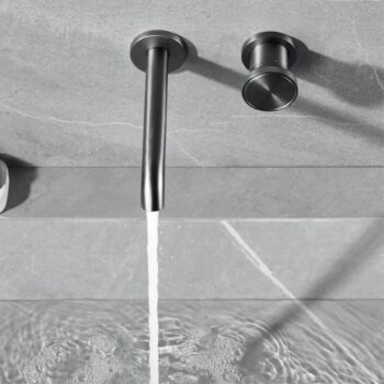 Gun Gray Brass Wall-Mounted Bathroom Faucet, Dual Control for Hot and Cold Water