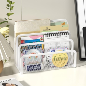 3-Tier Metal Mesh Desktop Organizer Rack for Books, Files & Office Supplies