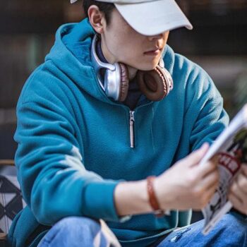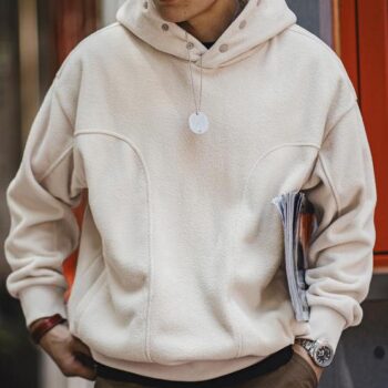 Men’s Double-Sided Polar Fleece Hooded Sweatshirt with Button Detail