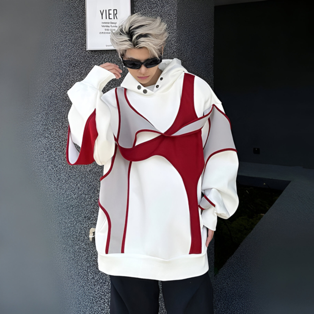 Looking for a sweatshirt that mixes comfort with bold style? This Men’s Hooded Sweatshirt with Deconstruction Ribbon Shoulder Padded Design is the perfect choice. Combining a casual fit with a unique, edgy design, this hoodie brings together modern fashion elements and everyday practicality. The contrast color design and deconstruction ribbon shoulder padding make this hoodie a standout addition to any wardrobe, allowing you to express your style with confidence.
