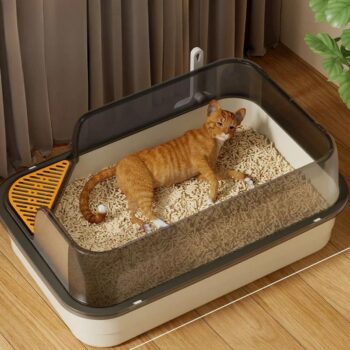 Large Semi-Enclosed Cat Litter Box with High Fence and Easy-Clean Design