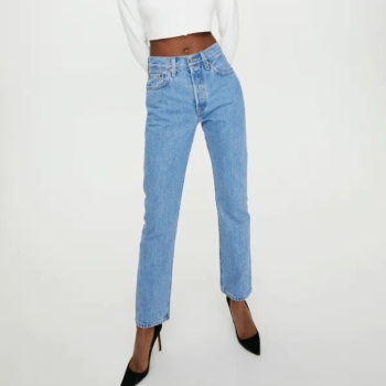 High Waist Retro Straight Cotton Denim Jeans for Women