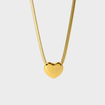16K Gold Plated Stainless Steel Flat Snake Chain Heart Pendant Necklace Samsung