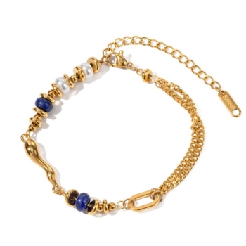 18K Gold Lapis Stone and Seed Pearl Bracelet