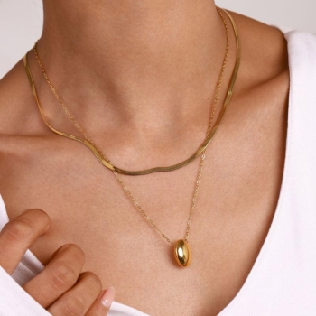 18K Gold Double Layer Stainless Steel Pendant Necklace for Women – Elegant & Trendy