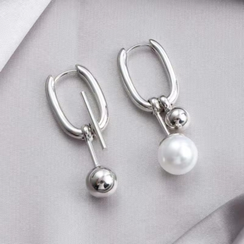 Fashion Metal Pearl U-Shaped Drop Earrings for Women