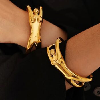 18K Gold Plated Smooth Line Cuff Bracelet – Waterproof Stainless Steel Bangle