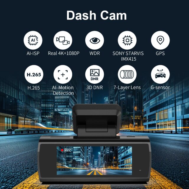 The Cam delivers real 4K Ultra HD (3840×2160) resolution in the front and 1080P Full HD in the rear, offering sharp, high-contrast recordings. Thanks to the AI-enhanced ISP and Sony STARVIS technology, even low-light environments are no challenge—license plates, road signs, and pedestrians remain crystal clear, whether you’re driving through the city or a dark country road.