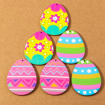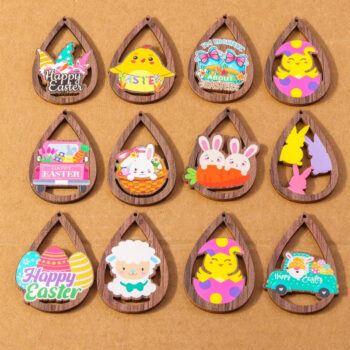 10pcs Wooden Easter Bunny Egg Charms for DIY Jewelry & Crafts