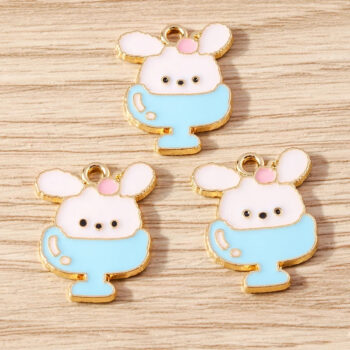10pcs Cute Cartoon Rabbit Enamel Cup Charms for DIY Jewelry Making