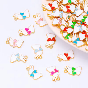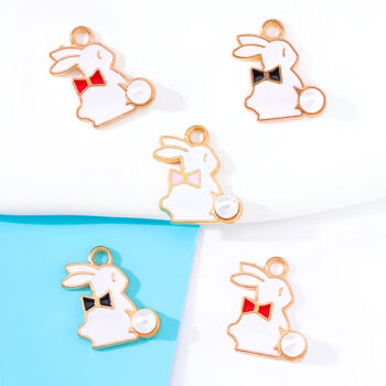 10pcs Cute Enamel Rabbit Charms – Animal Pendants for DIY Jewelry Making