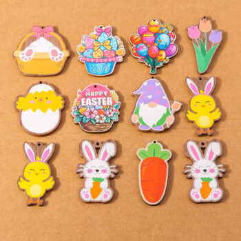 10 Pcs Colorful Wooden Easter Bunny & Egg Charms