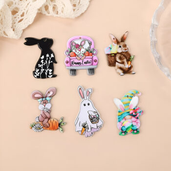 6Pcs Easter Egg & Bunny Charms – Acrylic Pendants for DIY Jewelry Making