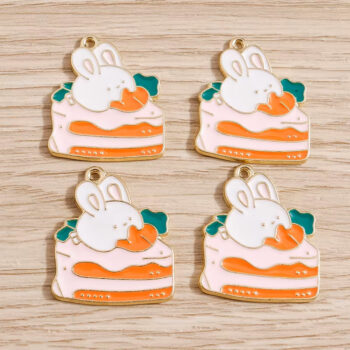10pcs Cute Rabbit Eating Cake Charms – Enamel Animal Pendants for DIY Jewelry