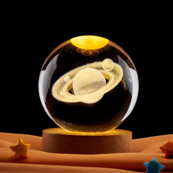 3D Crystal Solar System Night Light with Wooden Base
