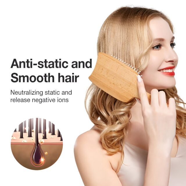 Made from durable natural beech wood, this brush isn’t just beautiful—it’s built to perform. Measuring approximately 9.7 inches in length, its wide board shape is ideal for all hair types, from fine to thick, curly to straight. The air-cushioned base absorbs pressure, reducing stress on the scalp and helping prevent damage. Wooden bristles gently stimulate blood circulation while distributing natural oils evenly for shinier, healthier-looking hair.