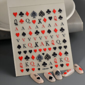 Poker Card Nail Stickers 3D Spade Heart Club Diamond Decals for DIY Manicure