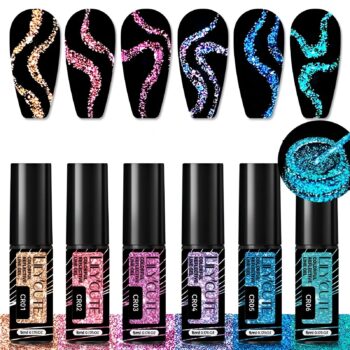 6-Color Reflective Glitter Nail Art Liner Gel Set