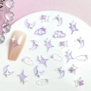 50PCS Transparent Resin Moon Cloud Nail Charms with Purple Star Nail Decorations