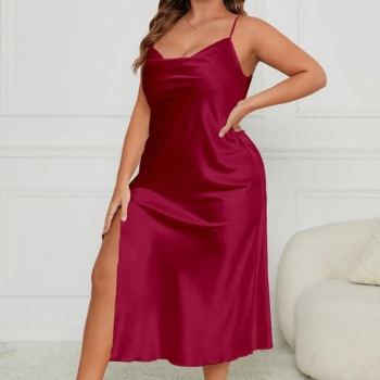 Plus Size Satin Spaghetti Strap Nightgown Chemise Sleepwear – Burgundy