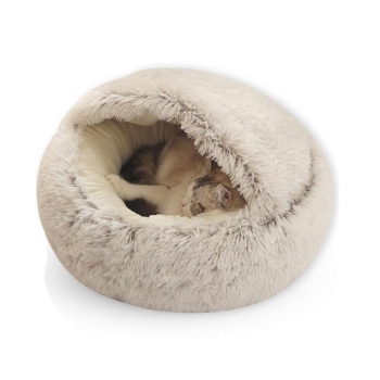 Round Plush Cat Bed with Cover – Cozy Nest for Small Dogs and Kittens