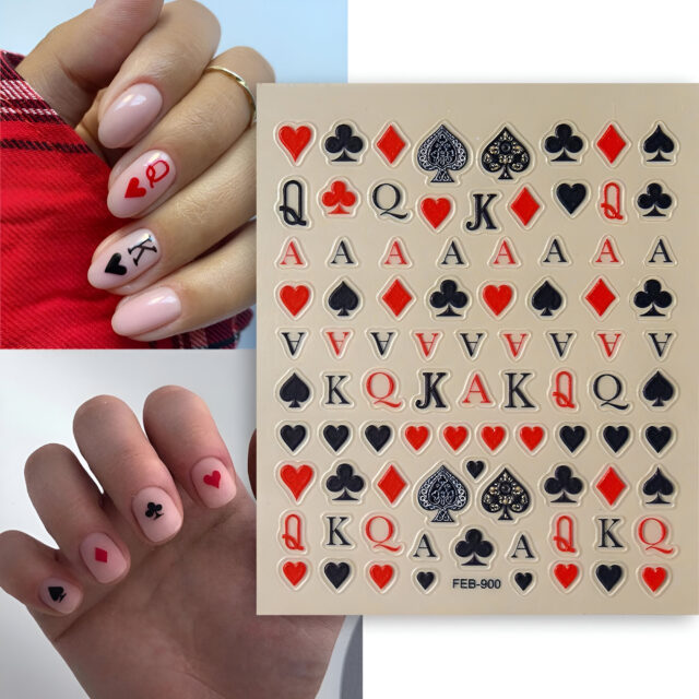 Applying these poker card stickers is easy! Simply peel and stick the decals onto your clean, dry nails, and gently press them down. To ensure long-lasting wear, apply a clear top coat to seal the design. In no time, you’ll have a set of stunning poker-inspired nails that are sure to grab attention.