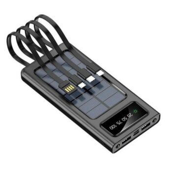 200000mAh Solar Power Bank with Built-in Cables and Fast Charging for Apple Devices