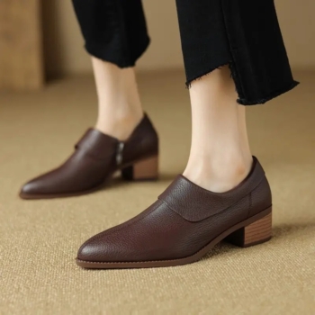 Elegant Women’s Genuine Leather Chunky Heel Pumps with Zipper