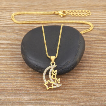 Elegant Star & Moon Initial Pendant Necklace with Zircon – Perfect Mother’s Day Gift