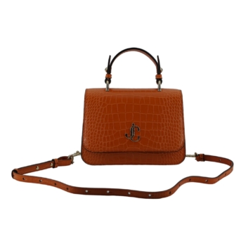 Jimmy Choo Amber Orange Croc Embossed Top Handle Shoulder Bag