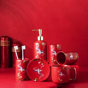 Elegant Crane Painted Ceramic Bathroom Accessories Set
