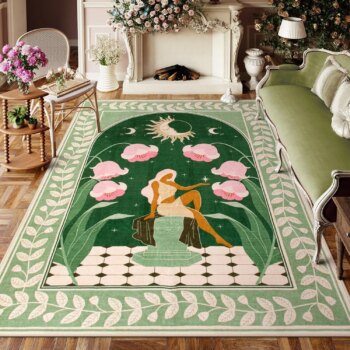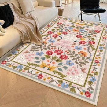 Pastoral Floral Washable Non-Slip Living Room & Bedroom Carpet Rug