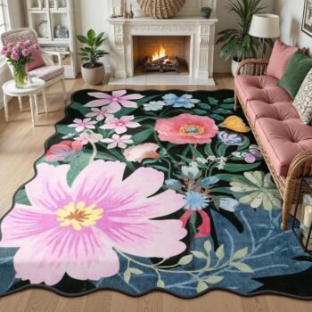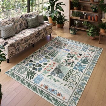Botanical Floral Non-Slip Area Rug – Soft, Modern & Machine Washable