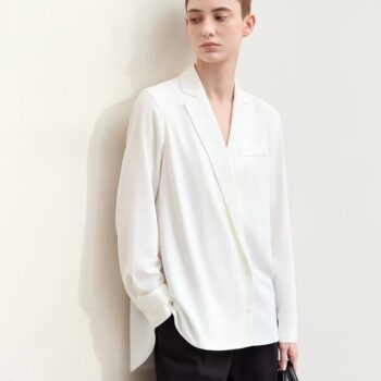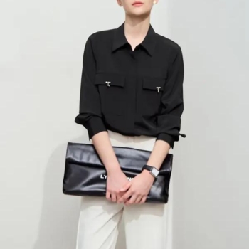 Minimalist Chiffon Work Shirt – Elegant Lapel, Concealed Buttons, Office Chic