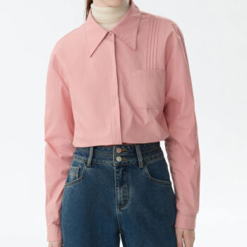 Loose Fit Long Women’s Shirt with Turn-Down Collar and Button Detail