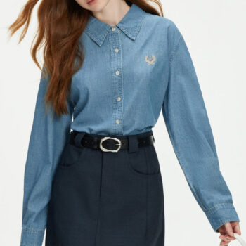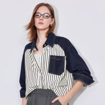 Women’s Denim Patchwork Striped Blouse – Chic Long Loose-Fit Shirt