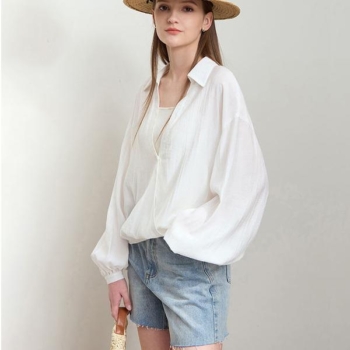 Elegant Winter Long-Sleeve Blazer Collar Loose Chiffon Shirt