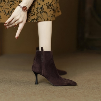 Elegant Women’s Sheep Suede Ankle Boots with Pointed Toe & Thin Heel