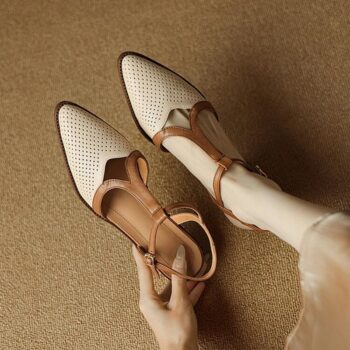Pointed Toe Chunky Heel Slingback Sandals for Women – Split Leather Summer Shoes