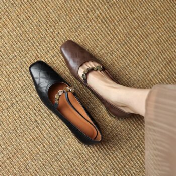 Genuine Leather Low Heel Slip-On Loafers for Women – Casual Dress Pumps