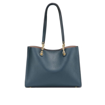 Elegant Dark Blue Genuine Leather Handbag