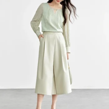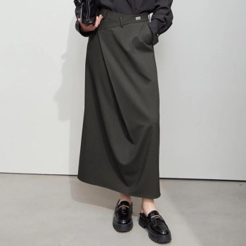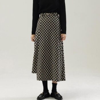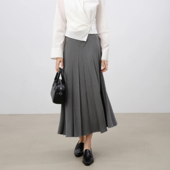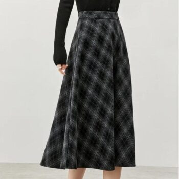 Winter Pleated A-Line Wool Blend Skirt for Women